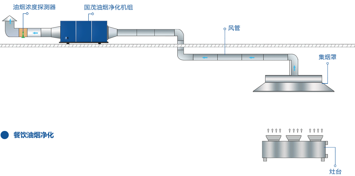 油煙凈化設(shè)備 油煙在線監(jiān)測(cè) 廚房自動(dòng)滅火裝置 排油煙風(fēng)機(jī) 國茂定制風(fēng)機(jī)